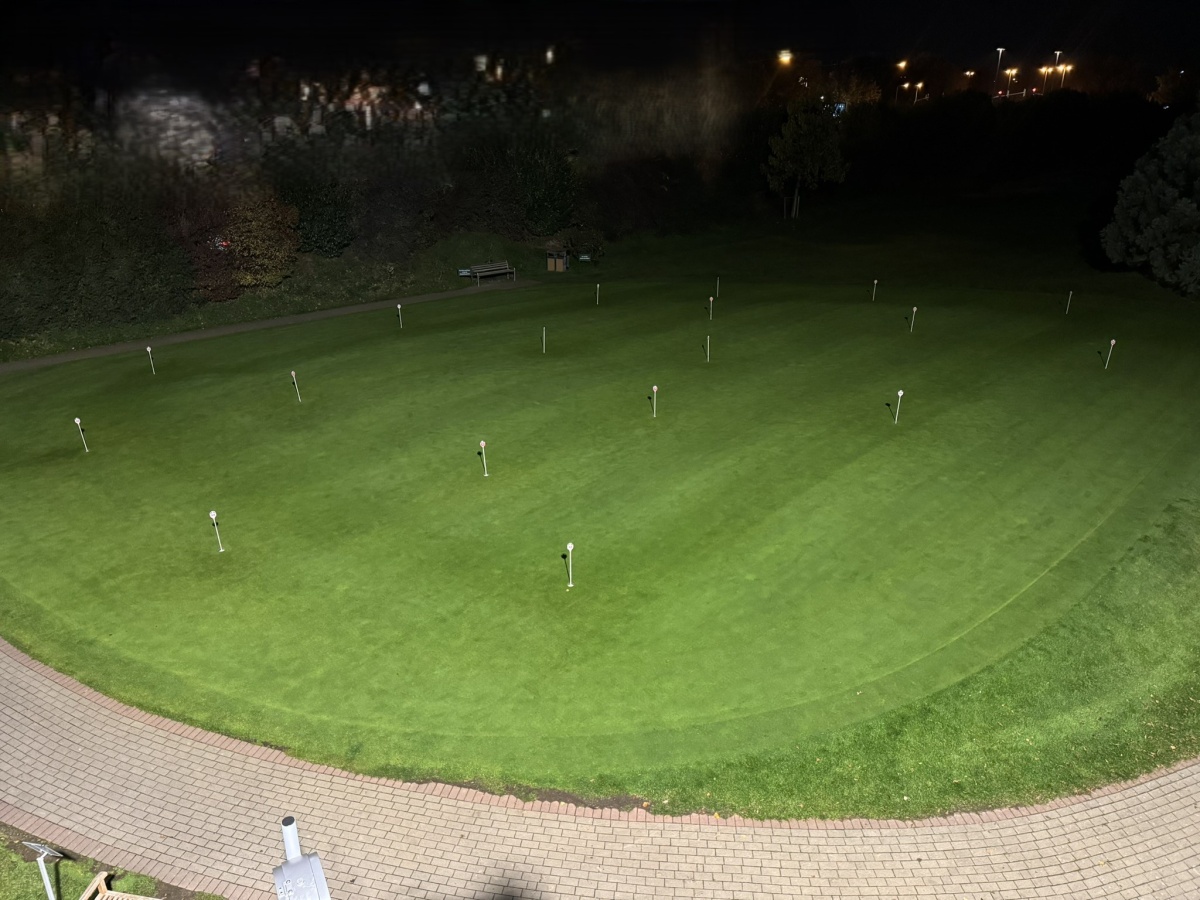 Nicht nur die Abschlagplätze, sondern auch das Putting-Grün sind vollständig beleuchtet. Die Flugbahn des Balls ist dank der leistungsstarken LED-Technik jederzeit sichtbar – ein echtes Highlight für das Training am Abend!